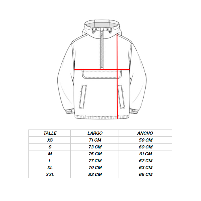 UN ANORAK DISEÑADO PARA LA AVENTURA. ESTE BUZO DE MEDIO CIERRE ES TU ALIADO PERFECTO. CONFECCIONADO EN TELA IMPERMEABLE, TE PROTEGE DE LOS ELEMENTOS. CUENTA CON AJUSTE EN CINTURA Y CAPUCHA PARA ADAPTARSE A TUS NECESIDADES, RESPIRACIONES EN LAS AXILAS PARA MAYOR VENTILACIÓN Y UN AMPLIO BOLSILLO CANGURO DELANTERO. LA TAPA SUPERIOR DEL BOLSILLO ES UN DETALLE DE DISEÑO.